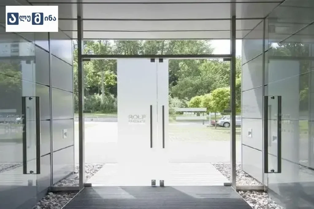სენსორიანი ავტომატური მინის კარი სასტუმროს შესასვლელისთვის - თანამედროვე დიზაინი